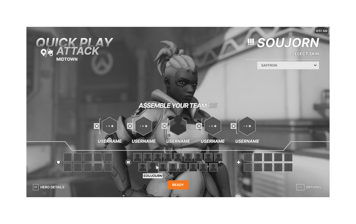 The wireframes were designed based on the current structure of the game. The wireframes were then refined based on usability testing. Everything in the wireframes was made from scratch except the Overwatch 2 logo which belongs to Blizzard and grabbed from the internet